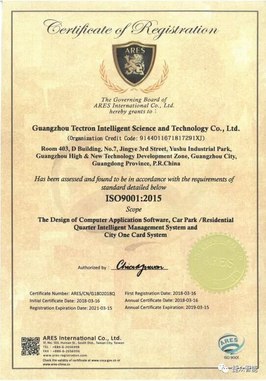 广州捷众是广东省软件协会会员单位、广州市停车协会会员单位,并已通过ISO 9001:2015质量管理体系认证、知识产权管理体系认证、CE认证、SGS认证、公安部检测中心的型式检验等,公司拥有多项专利和软件著作权。